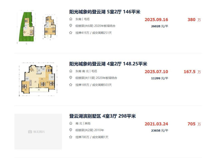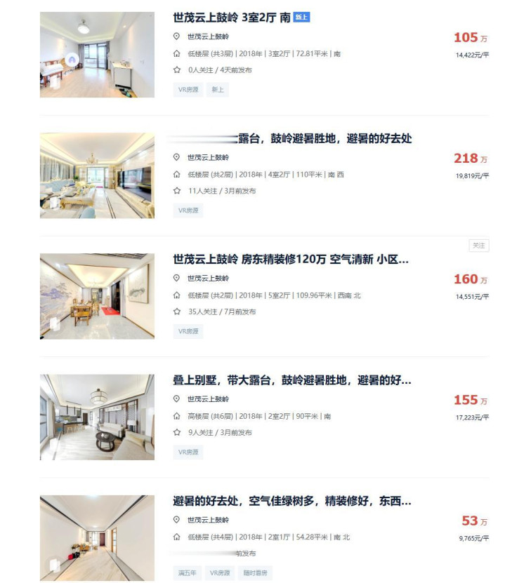 山上楼盘的客群受众较窄,因为主要是商业用房,转让费高,主要面向度假、养老群体,刚需购房者极少考虑。二手房挂牌时,买家选择面窄,成交周期长,且议价空间大,投资属性较弱。这一点在当下楼市体现最明显: